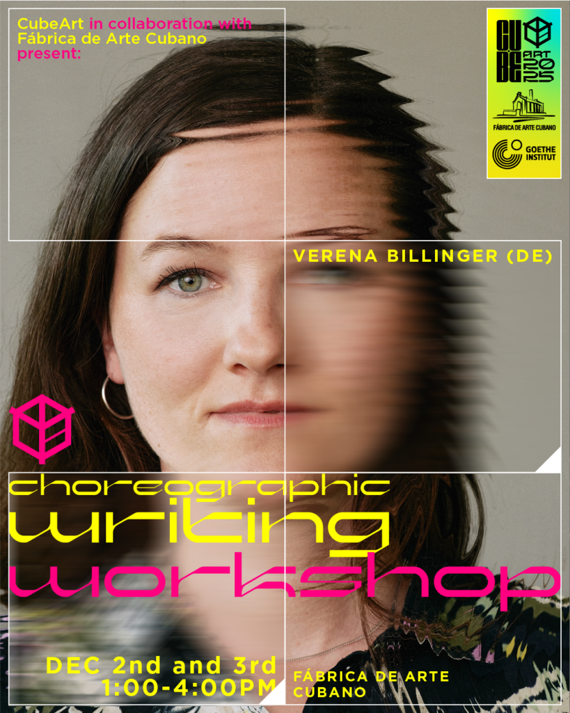 Im Rahmen des CubeArt Festivals gibt Verena in der Fábrica de Arte Cubano einen Workshop in „choreographic writing“ für professionelle Theater- und Kunstschaffende aus Havanna.